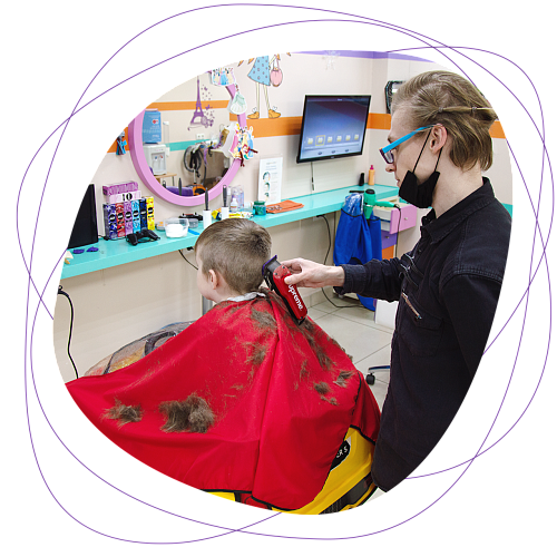 Ваш малыш даже не догадается, что пришел в парикмахерскую. Салон «Маленький Воображуля» больше похож на игровую комнату: яркий, весёлый, с обилием игрушек, мультиков и игровых приставок.